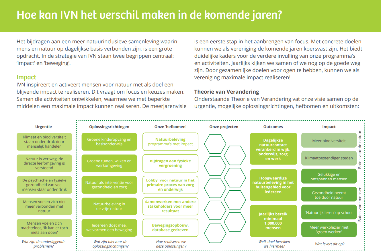In het voorliggende concept Meerjarenvisie van IVN staat op bladzijde 12 een schema. Vanuit de visie en dit schema willen we met een aantal leden bekijken of onze activiteiten aansluiten en of we wellicht nog andere natuuractiviteiten kunnen/moeten ontplooien.