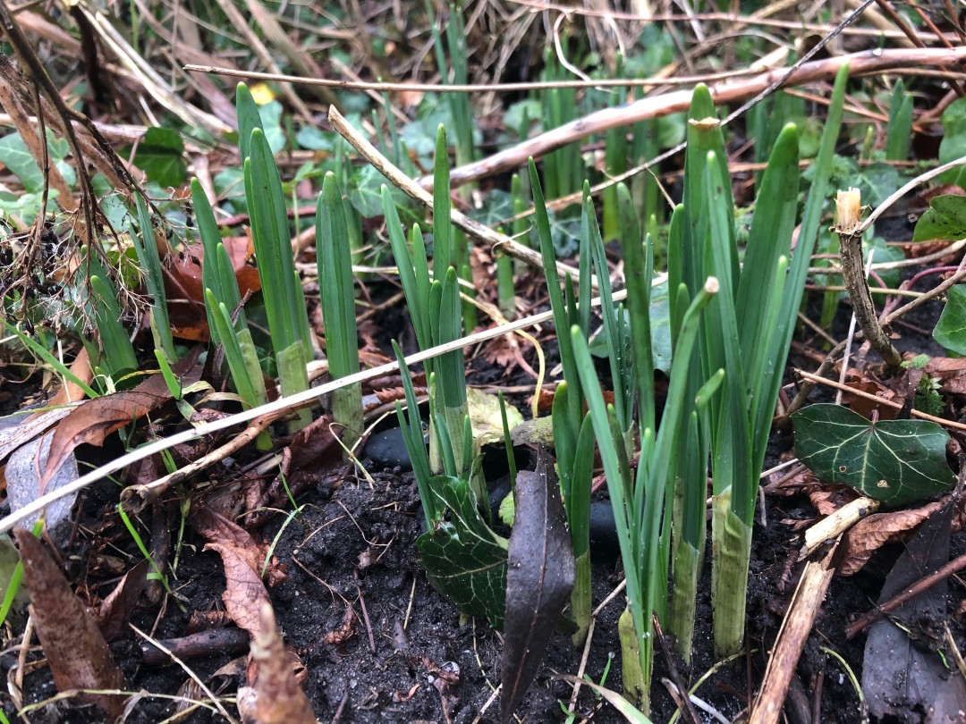 Zojuist zag ik de paaslelies en het daslook in de tuin al de kop opsteken. Lentebodes!