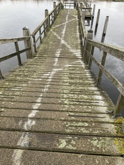 Foto's Gezond Natuur Wandelen: Gerdien van den Broek | | | Zigzaggend… Op de heenweg ging ik over een wit bevroren ‘Kamelenbrug’ Het Twiske in. Op de terugweg, een uur later, zag ik deze magische zigzaglijnen. Foto: Lidy Ridder